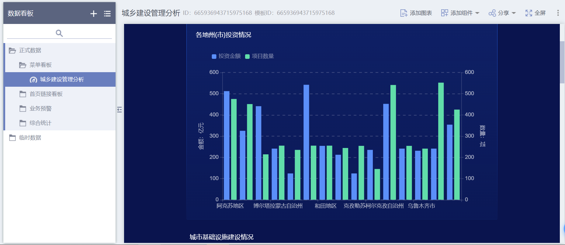 某住建厅数据交换和数据应用平台,基于AI+数据资源赋能平台,对数据资源中心数据进行深度挖掘应用,实现了数据跨业务、跨部门的业务协作及交换共享,建设了项目、企业、人员、信用、房屋、应急、城市运行等展示分析专题、预警专题,满足了各级领导、各业务部门分析、预警、研判、监控等的需要,为住建领域提供“全、准、新”的权威数据支撑,建立用数据说话、用数据管理、用数据决策、用数据创新的管理机制。